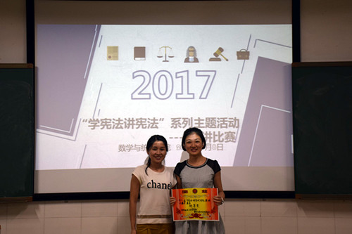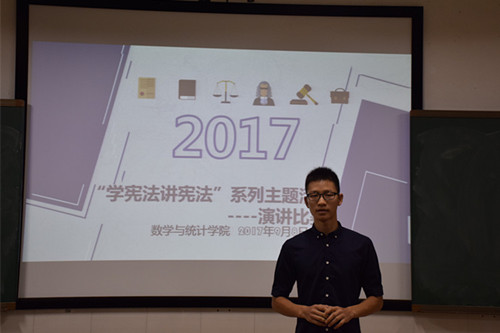 比赛初始,主持人分别介绍了到场的各位评委,紧接着参赛选手按年级次序依次上台演讲。选手旁征博引,用“国无法则乱,民无法则贫”,提出对国家建设和对法的概念,呼吁大家行动起来,遵法守法,争做国家栋梁。用一个个生动的列子阐述了自己对宪法的理解,为什么要遵守宪法,如何去遵守宪法,从身边的礼仪小事谈起,进而引申到国家平安和民族团结。他们还谈到了“校园暴力”,呼吁大家要懂法守法,这样才能保护好自己的切身利益。选手们选题新颖、联系实际、各具特色,最终来自16级数应班的贺文获得了本次演讲比赛的特等奖。