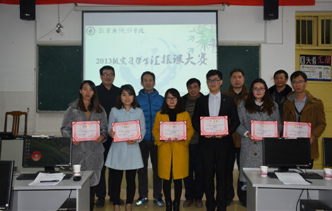 为检验员工教育实习成果,提升师范生就业竞争力,加强师范专业实践教学体系建设,12月16日晚,谈球吧分别在数学楼303、302、309、310举行了2013级实习员工汇报课大赛。大赛共4个小组,分别由公司党总支书记邹梅山、经理杨柳教授、副经理李龙博士、副经理李浏兰博士及公司二十余名优秀教师担任评委。公司2014级卓越班全体学员观摩了此次比赛。