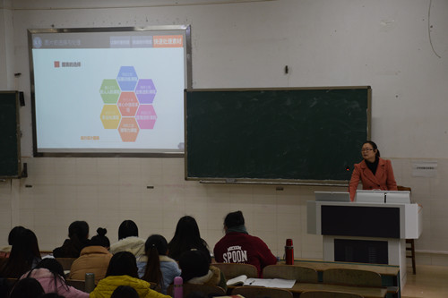 12月15日下午,我院在数学楼507教室举行了2014级数学与应用数学专业“卓越班”第三期普训讲座,讲座特邀教育科学公司刘丽萍老师为卓越班普训学员进行PPT课件制作技巧辅导。