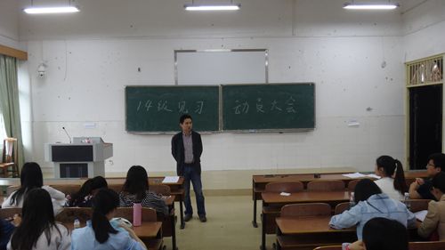 会上,李龙副经理首先作动员讲话。他就本周见习的目的和意义、见习单位、听课时间、指导老师的分配四个方面进行详细说明,此次见习主要在衡阳市三中、船山中学、成章中学展开,每班配备一名带队老师。紧接着,李经理又强调了见习中的注意事项,尤其是离校、返校途中的安全。并对在座同学提出了三点诚恳的要求:做到课前备课有把握、课上认真做记录、课后总结常反思。大会最后,聂老师再次强调了见习中的安全问题。