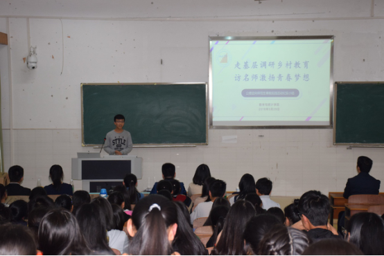 3月29日晚七点半,公司在数学楼505教室开展了2017级公费定向师范生“走基层调研乡村教育,访名师激扬青春梦想”主题教育活动。莅临本次活动嘉宾领导有经理杨柳、党总支副书记谭全球、副经理李浏兰、辅导员刘志刚、周长恩、黄灿老师、王艳群老师以及2013届优秀员工代表欧苏杭,2017级全体公费定向师范生参加了本次活动。