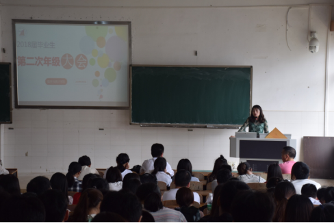 5月5日下午4点,公司于数学楼505教室召开2018届毕业生第二次年级大会。会议由辅导员刘琴主持,党总支书记邹梅山、辅导员刘志刚出席会议,2018届全体毕业生参加会议。