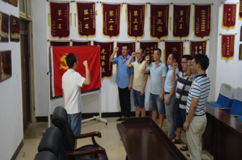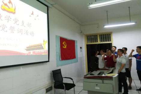 为庆祝中国共产党建党97周年,2018年7月,谈球吧教工党支部以“不忘初心、牢记使命”为主题,组织全体党员采取面对党旗集体宣誓的方式,开展了一次重温入党誓词活动。