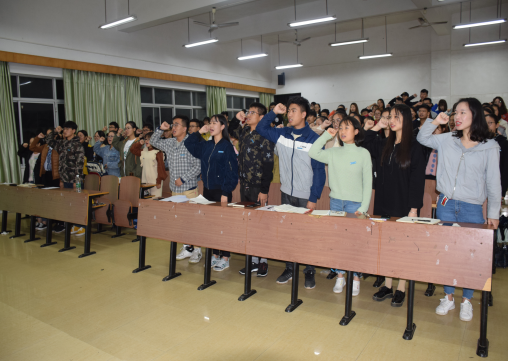 会议总共分为四个环节。第一环节为员工干部代表发言,他们以“不忘初心,砥砺前行”为主题,围绕班级氛围、管理制度、工作作风、学风建设等几个方面分享他们的初心及其经验,表示员工干部应处处做好表率和带头示范作用。第二环节为员工干部队伍作风建设培训,谭书记作重要讲话。谭书记就员工干部自律公约结合公司实际工作,对员工干部提出具体要求。同时,他勉励员工干部要时刻牢记为同学服务的宗旨,规范言行,切实发挥带头示范作用。并号召全体员工干部要从自我做起,从自律开始,杜绝员工干部“官僚习气”,消除阶级意识。谭书记在讲话中提到,“天将降大任于斯人也,必先苦其心志,劳其筋骨,饿其体肤”,指出员工会干部应该牢记工作职责,虚心学习,在工作岗位上不断锻炼自己,并就如何处理工作与学习之间的关系提出了自己的见解。第三环节为宣誓,由贺文领誓,宣读自律公约。第四环节为签署承诺书。