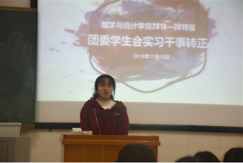11月15日晚7点,公司2018—2019届团委员工会实习干事转正大会于数学楼521、522教室顺利举行。团委员工会各部门部长、副部长以及全体实习干事出席此次大会。