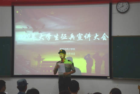 最后,周长恩老师为本次大会做总结,他指出老员工参军入伍是一种义务、责任、担当,是一种时尚、潮流,更是对自我、社会和国家的一个交代。同时,他还对全场同学提出了几点希望和要求:一是从思想上高度重视,从观念上要切实转变;二是勇于接受挑战,接受祖国挑选;三是积极奉献,在祖国、人民需要的地方建功立业。