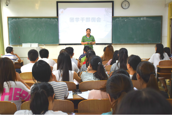 6月25日晚,公司于数学楼408教室顺利召开团学干部例会。公司党总支副书记谭全球、辅导员刘琴、刘志刚老师出席本次例会,全体团学干部参加了此次例会。